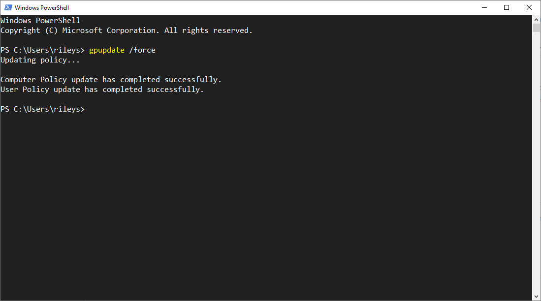 gpupdate /force - Step 4: It may take a few minutes to run. Once it's completed, it will confirm by saying: