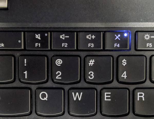 Another security feature built into ThinkPads is hardware mic mute. The F4 function key acts as a mute button. When mute is on (indicated by a white light on the button), not only is the mic muted, but Windows can't access the microphone hardware at all. Even if you're using a program that says the mic is unmuted, it won't pick up any sound as long as the ThinkPad hardware mute is activated.